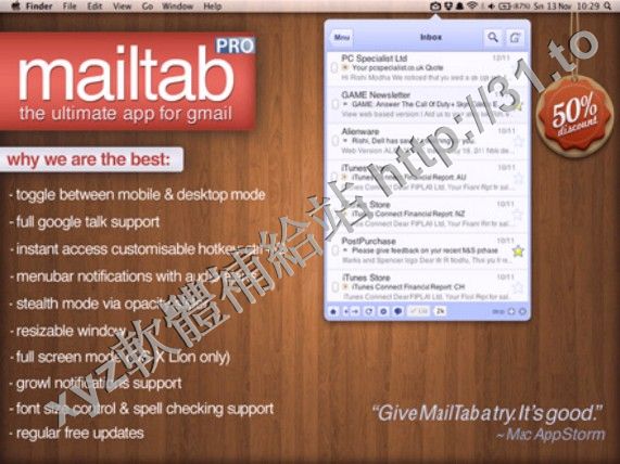 • MailTab Pro for Gmail v7.1 MacOSX 英文正式版(最好的Gmail蘋果客戶端多功能多賬號軟體)